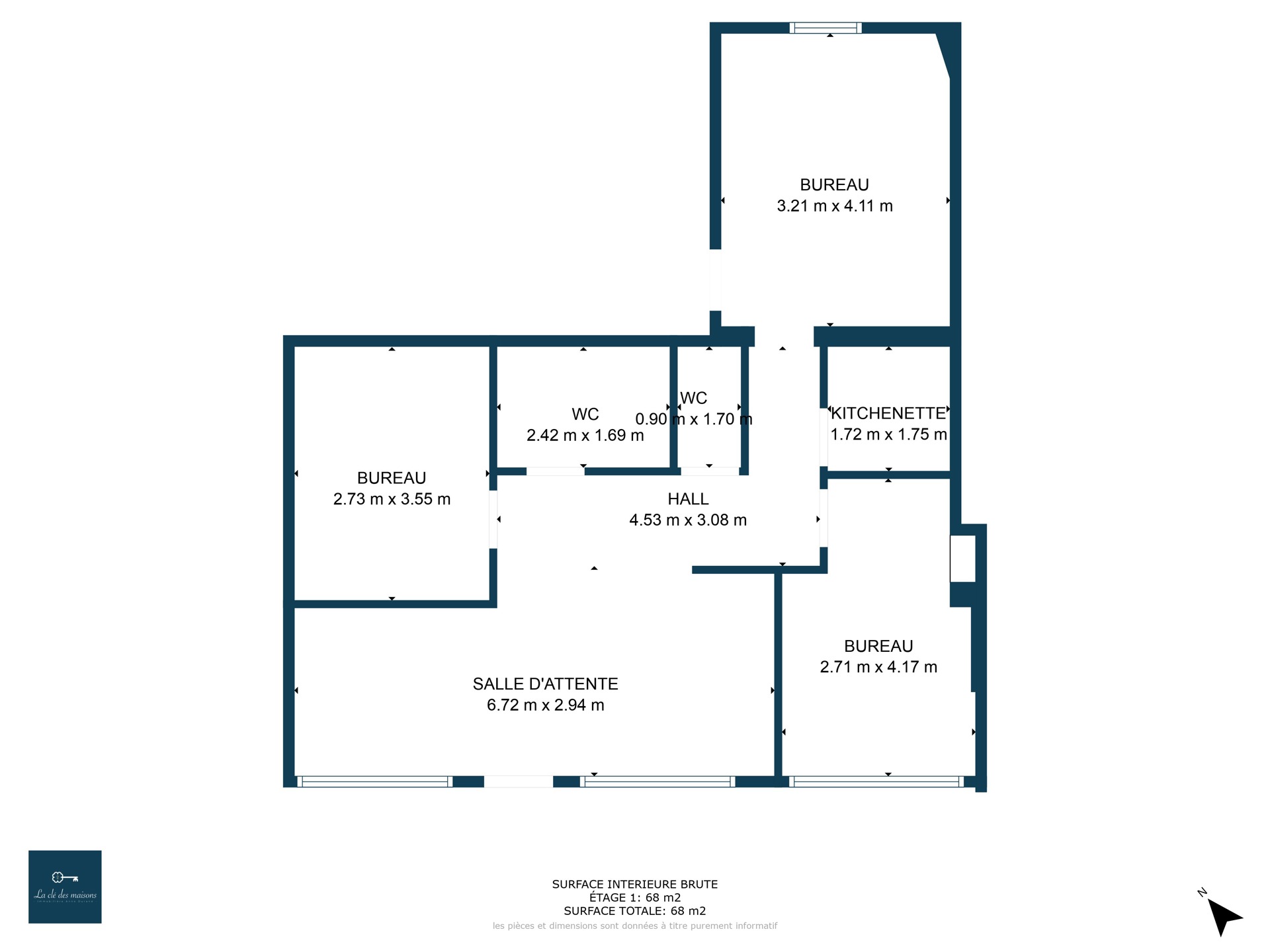 | Surface bâtie (surf. bât. princ.) | 68 |